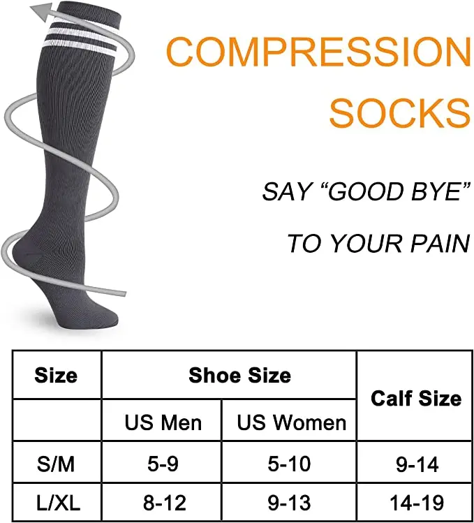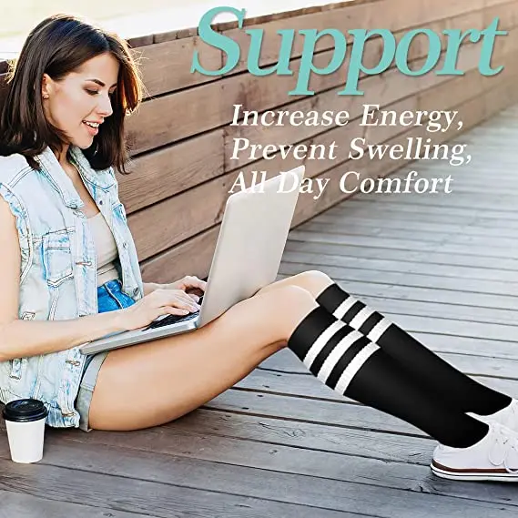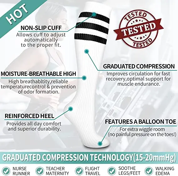 Improve circulation and reduce leg fatigue with these unisex knee-high compression socks — offering firm 30mmHg support for managing edema, varicose veins, and enhancing performance during sports or long days on your feet.