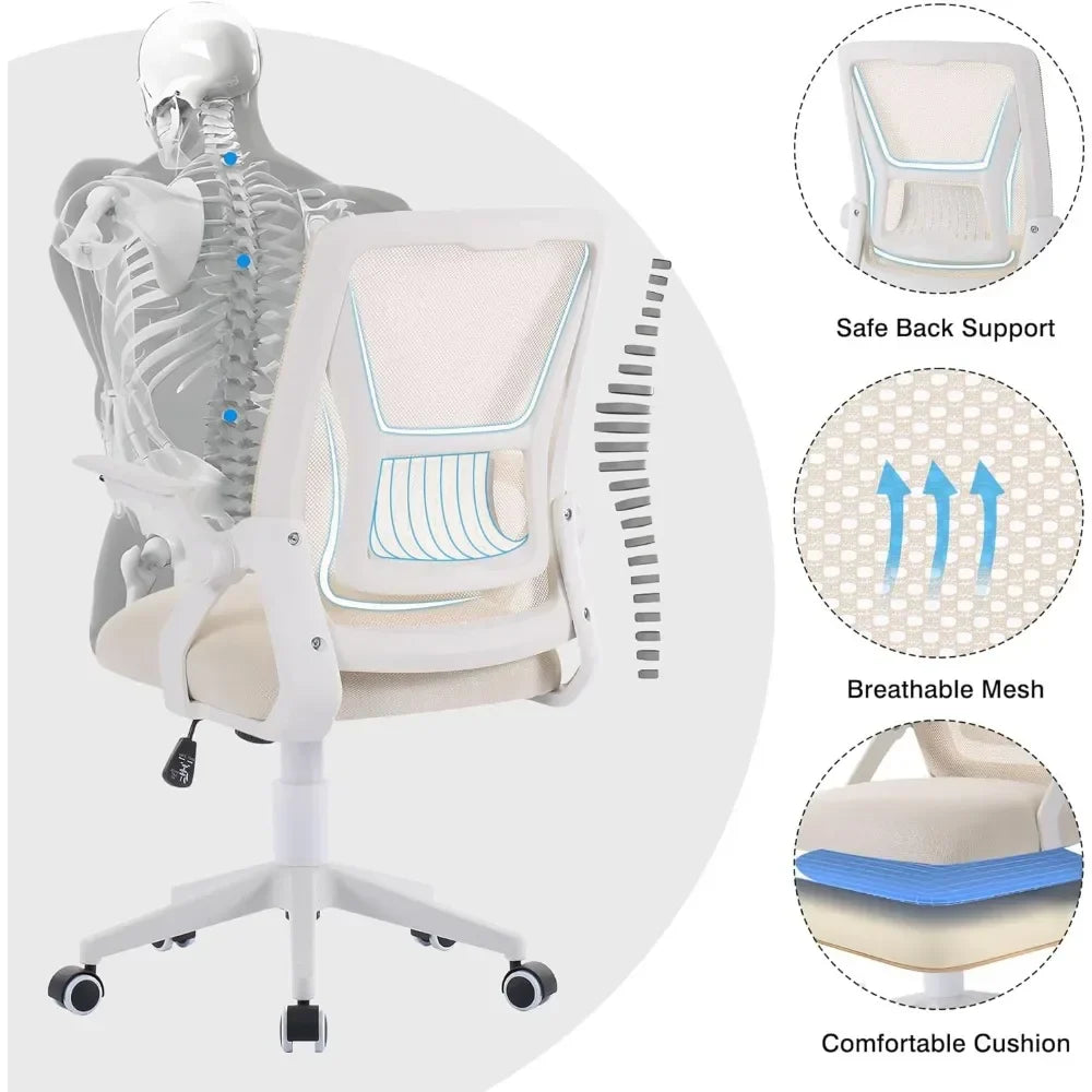 Bring modern comfort to your workspace with this beige mid-back ergonomic desk chair — designed with breathable mesh lumbar support, adjustable armrests, and a swivel base for versatile use in work, gaming, or study.