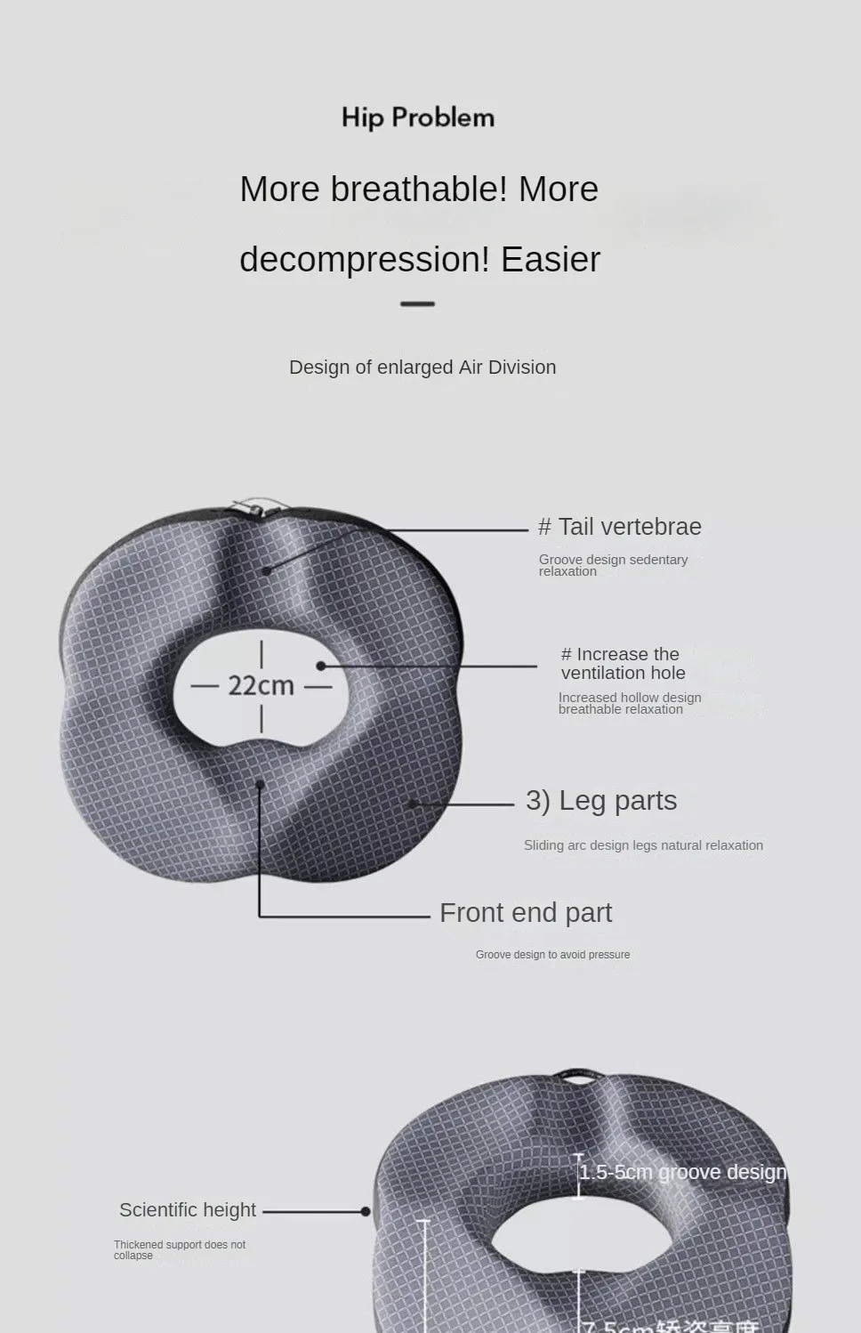 Get targeted relief and enhanced comfort with this orthopedic memory foam donut cushion — ideal for easing pressure from hemorrhoids, tailbone pain, coccyx injuries, and prostate discomfort.
