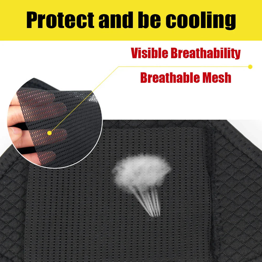 Breathable, skin-friendly fabric with a firm yet flexible metal splint and adjustable Velcro straps.