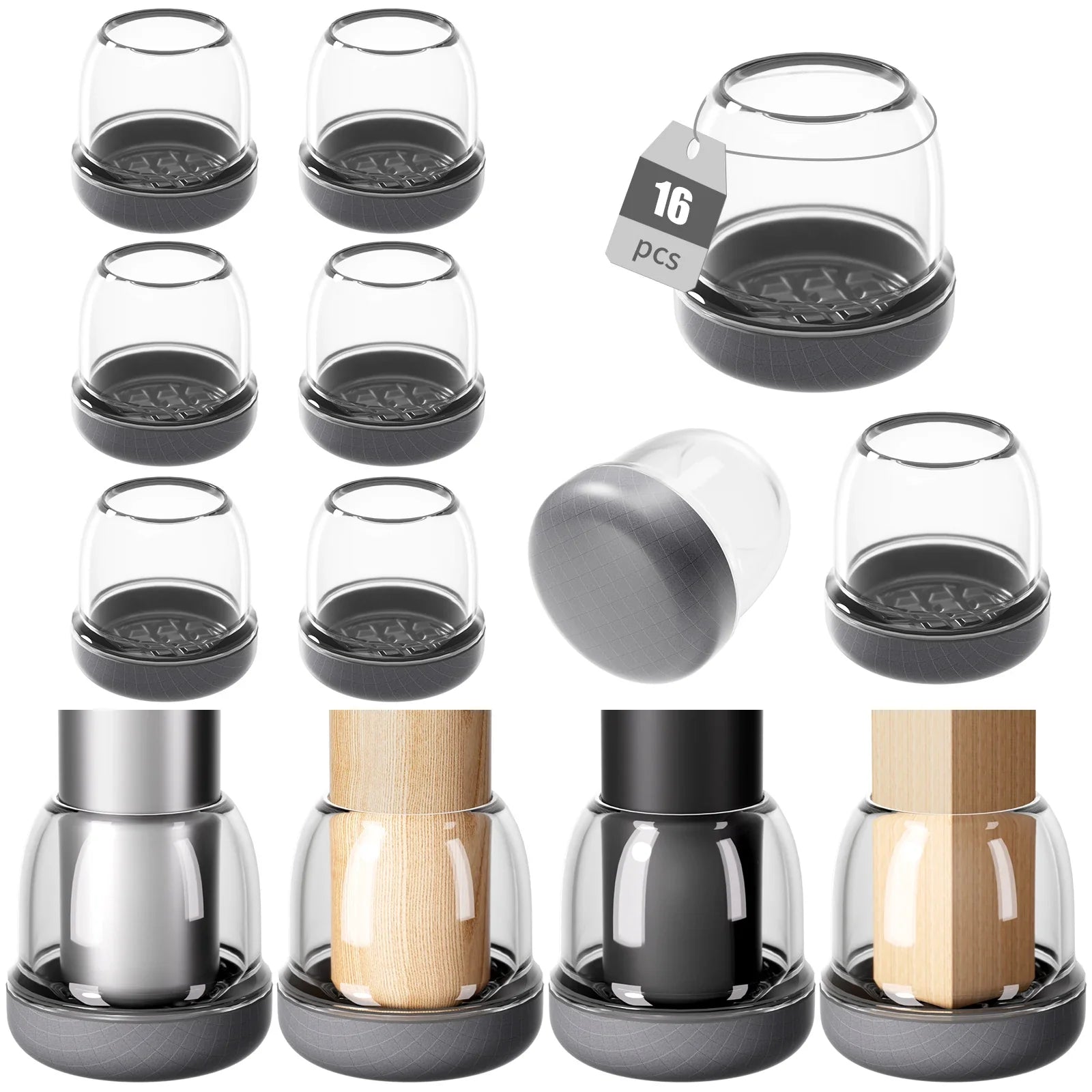 Protect your floors and enjoy effortless chair movement with these 16PCS round furniture leg protectors — featuring a graphene-coated nylon bottom that glides smoothly over carpet without trapping hair or dust.