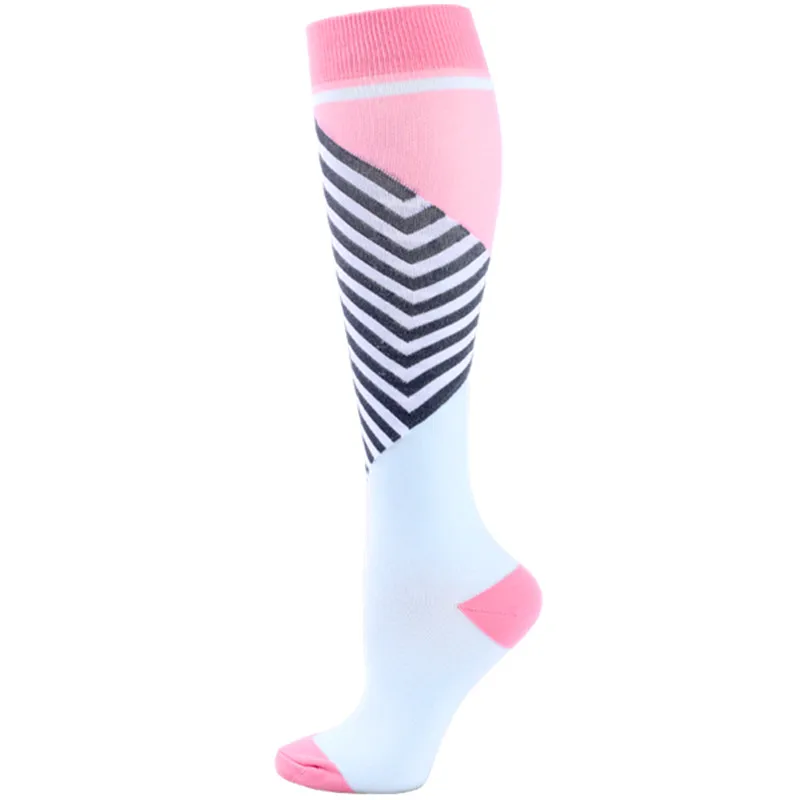Boost circulation and relieve leg fatigue with these stylish pink 20–30mmHg compression stockings — perfect for managing varicose veins, reducing swelling, and enhancing performance during sports or long-standing activities.