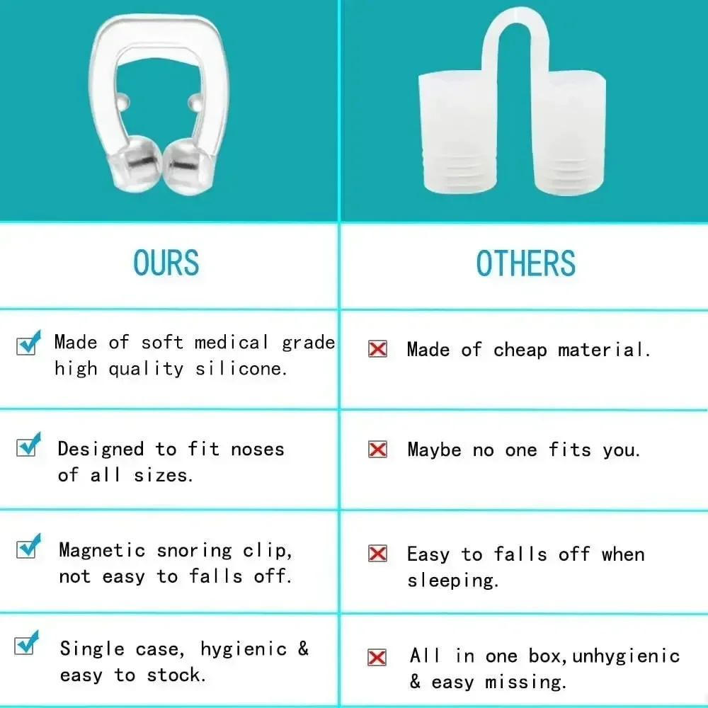 Sleep better with these Magnetic Anti-Snore Nose Clips β designed to open nasal passages, reduce snoring, and promote easier breathing.
