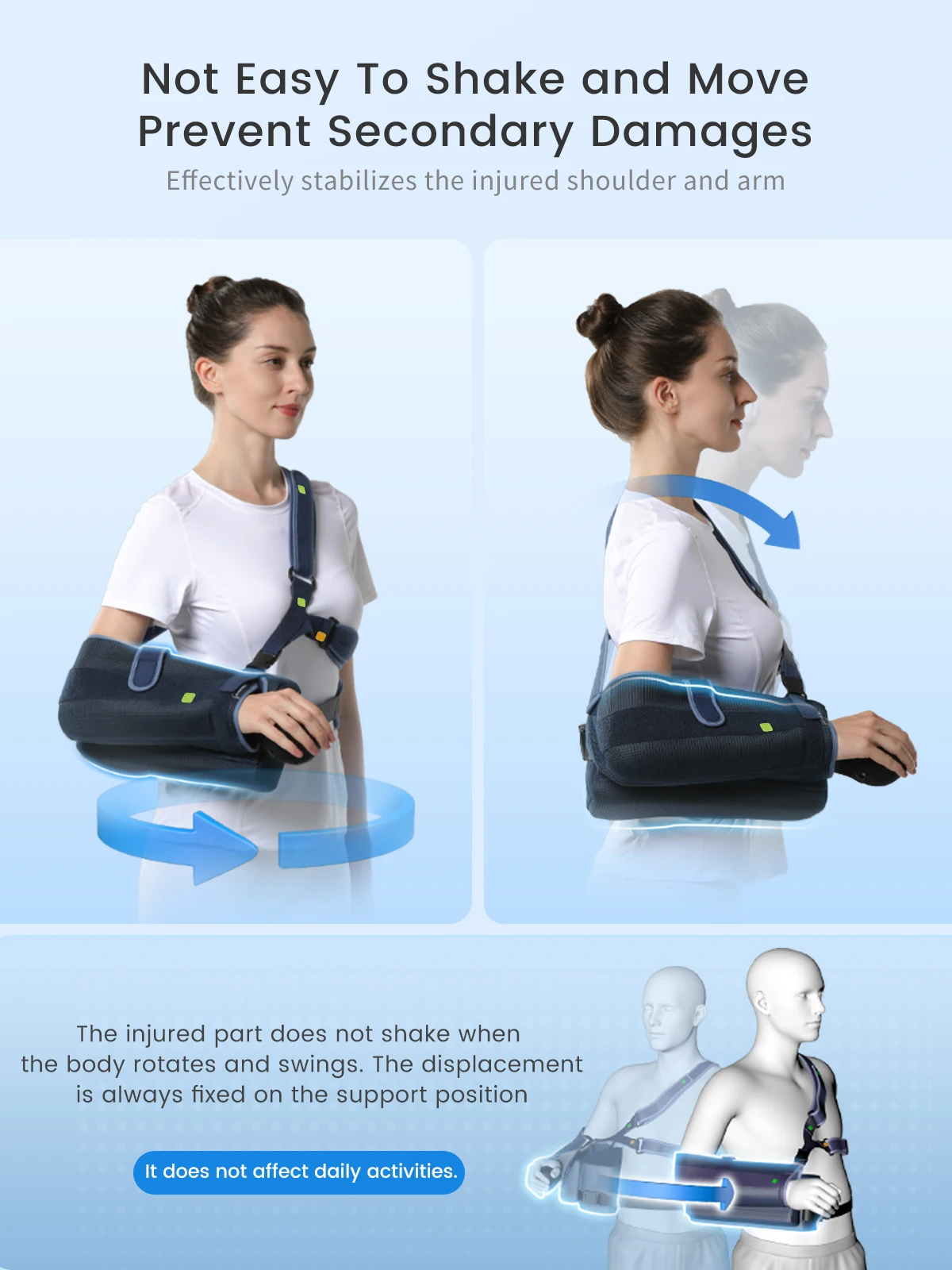 Provides secure immobilization for shoulder dislocations, fractures, and rotator cuff injuries