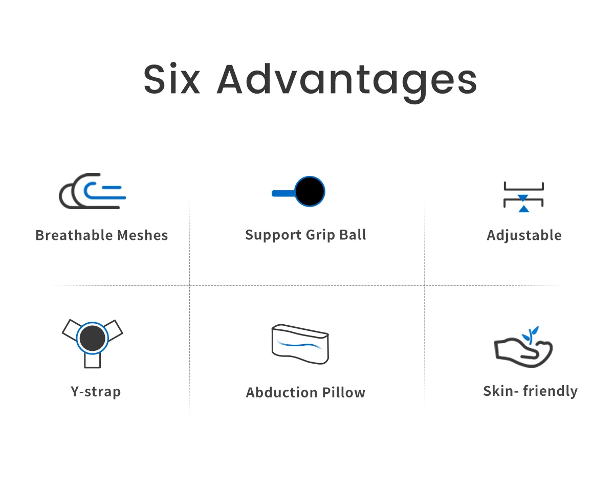Soft, breathable, and skin-friendly fabric with adjustable straps and a detachable abduction pillow for customized support.